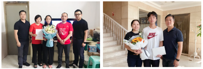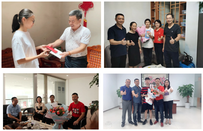 集團(tuán)黨委書(shū)記鄭藝紅等領(lǐng)導(dǎo)來(lái)到員工家中,代表集團(tuán)張桂陽(yáng)董事長(zhǎng)和公司向員工其及子女表示熱烈的祝賀和衷心的祝福,并送上盈眾基金會(huì)精心準(zhǔn)備的獎(jiǎng)學(xué)金、禮品和鮮花。同時(shí)送達(dá)的,還有公司給員工子女的一封信,信中對(duì)他們金榜題名表示熱烈祝賀,同時(shí)深情寄語(yǔ),期望學(xué)子們帶著期待與憧憬,在全新跑道上,更好地照顧自己、更好地自我管理,鍛煉身體、學(xué)習(xí)知識(shí)、體驗(yàn)生活、不斷成長(zhǎng),在追求理想的道路上實(shí)現(xiàn)人生的目標(biāo)與價(jià)值。