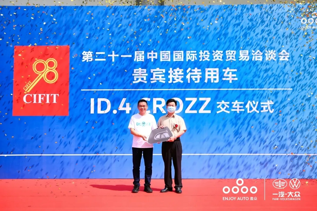 交車(chē)儀式上,廈門(mén)市機(jī)關(guān)事務(wù)管理局副局長(zhǎng)鄭瑞文先生從盈眾控股集團(tuán)副董事長(zhǎng)孫聘仁先生手中接過(guò)車(chē)鑰匙,現(xiàn)場(chǎng)整齊劃一的ID.4 CROZZ車(chē)隊(duì)整裝待發(fā),正式開(kāi)啟服務(wù)第二十一屆中國(guó)國(guó)際投資貿(mào)易洽談會(huì)的使命旅程。