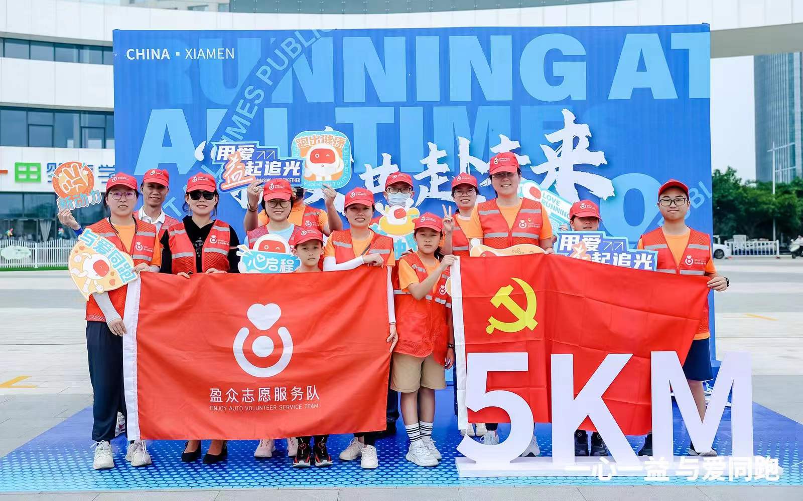 啟動(dòng)當(dāng)天,在“一心一益 與愛(ài)同跑”2023年第二屆廈門(mén)公益跑活動(dòng)現(xiàn)場(chǎng),盈眾志愿者隊(duì)暖心助力,為賽事提供支持與保障;盈眾跑團(tuán)為愛(ài)開(kāi)跑,與醫(yī)務(wù)工作者、癌癥患者及家屬、廣大跑友一起,用笑容和奔跑表達(dá)對(duì)生活的熱愛(ài),踐行健康積極的生活方式。