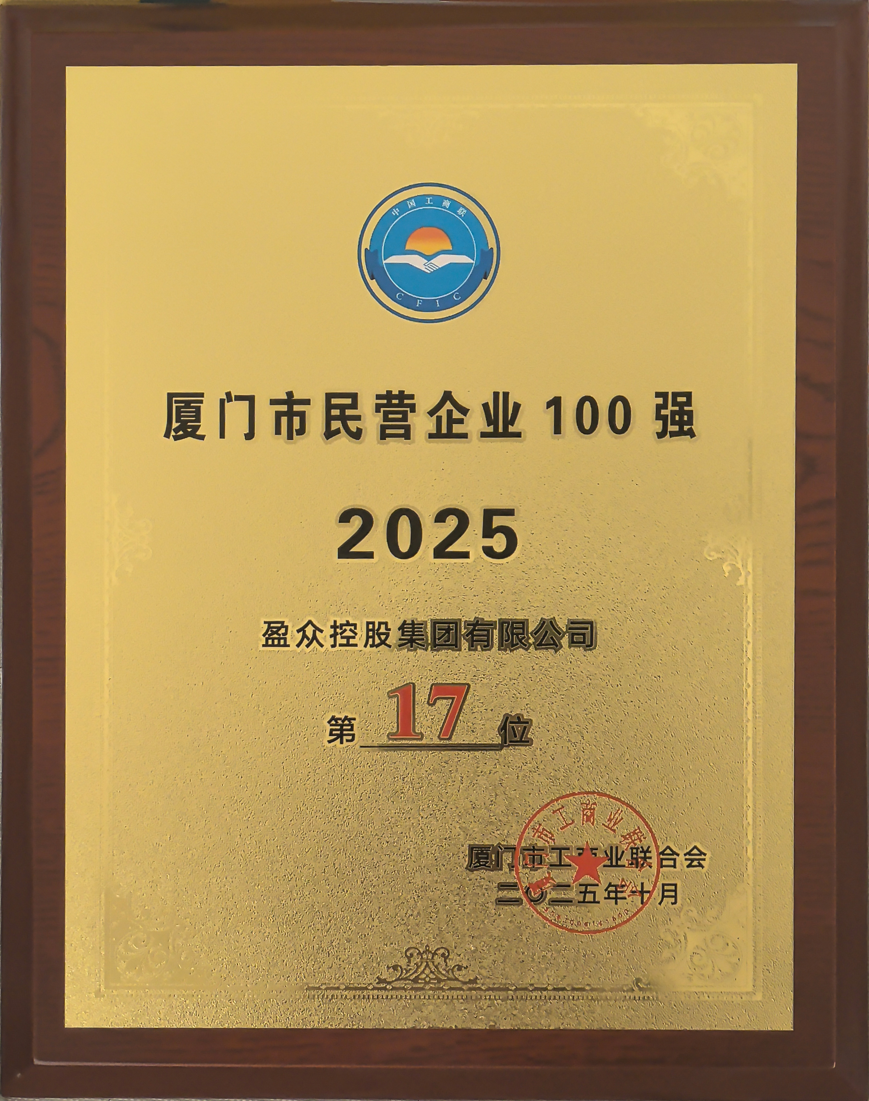 近日,2025年主題為“建言‘十五五’ 民企勇?lián)?dāng)”的廈門企業(yè)家日大會召開。會上,2025廈門市民營企業(yè)100強(qiáng)系列榜單發(fā)布,盈眾控股集團(tuán)憑借各項綜合實力,獲選2025廈門市民營企業(yè)100強(qiáng)第17位、2025廈門市民營企業(yè)服務(wù)業(yè)50強(qiáng)第10位。